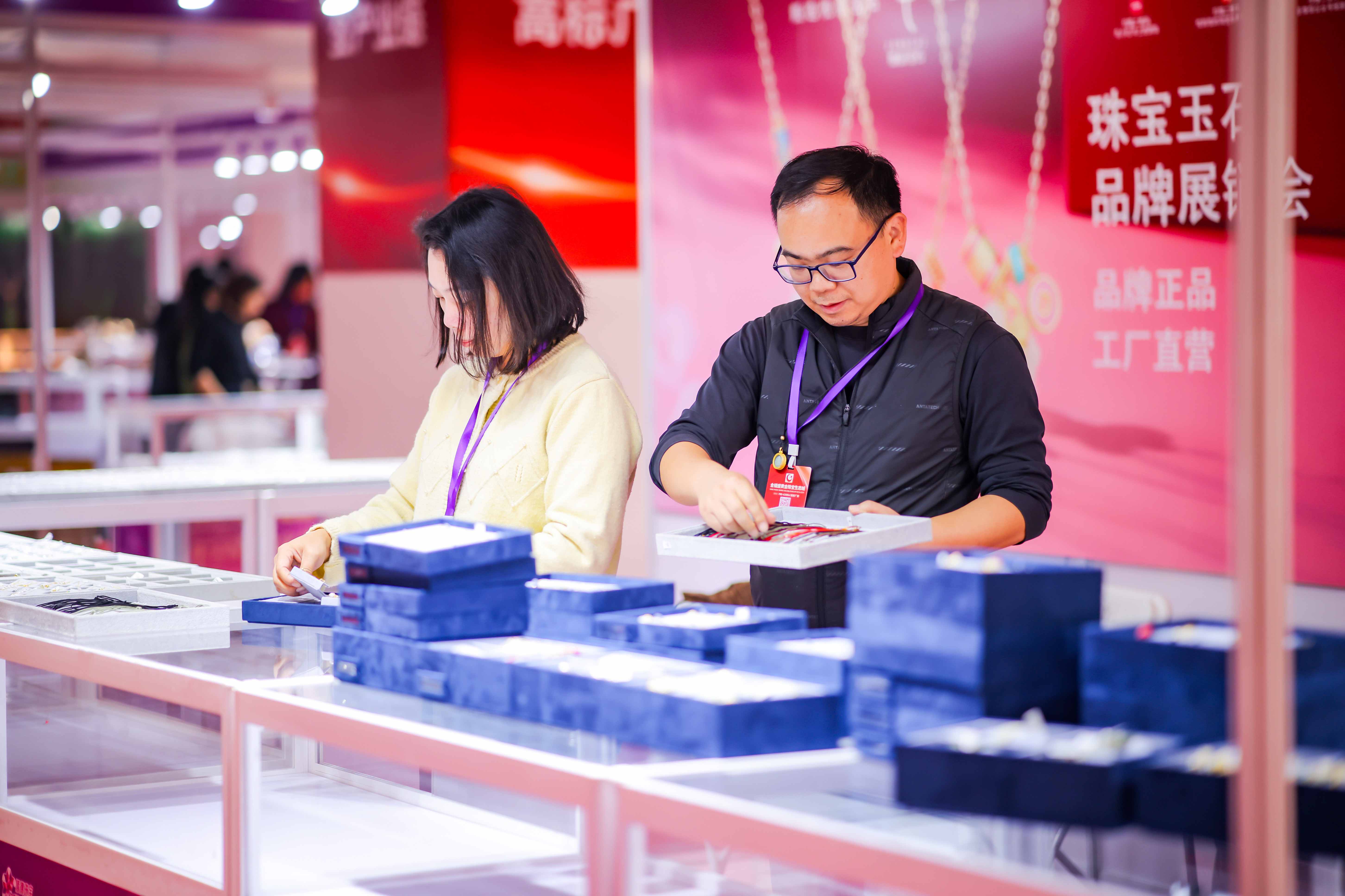 其中,由番禺区珠宝产业发展联合会、番禺区珠宝厂商会和番禺区大罗塘珠宝首饰商会共同组织了“番禺展团”以创新设计与精湛工艺成为展会焦点,集中展示了番禺珠宝产业的集群实力与时尚活力。