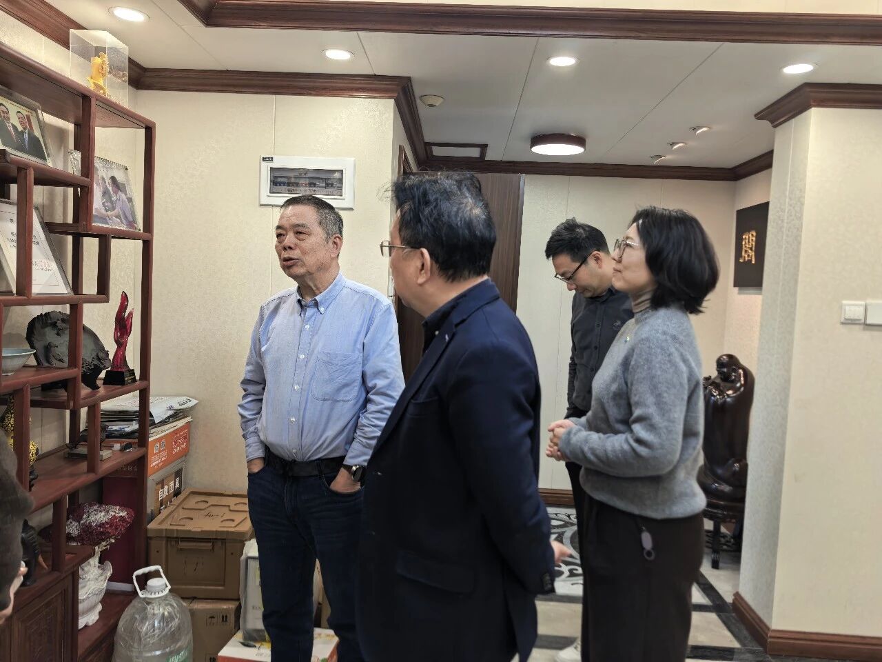 1月8日下午,番禺区珠宝厂商会会长黄建民、秘书长简海琪、副秘书长何瑜媚一行三人,前往广东省黄金协会拜访交流,受到广东省黄金协会会长甄伟钢、副会长兼秘书长叶永光在协会热情接待,双方随即展开了一场富有成效且意义深远的会谈。