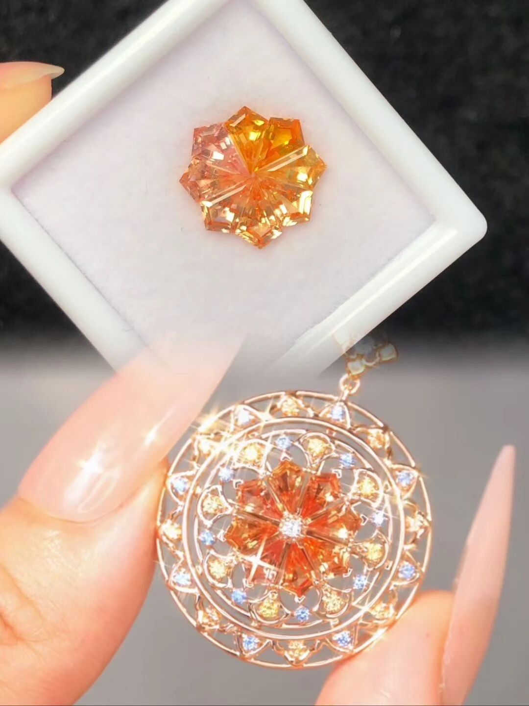 与此同时,在彩色宝石品类方面,雅鑫实现了全品类高端彩宝配石。公司从货品的颜色、车工、火彩到净度,都进行了细致且系统的分类。各类规格货品一应俱全,货量充足且稳定。雅鑫主打“没有配不齐的彩宝订单”这一理念,全方位免除客人的后顾之忧。 此外,雅鑫并未满足于彩宝裸石业务,而是在此基础上向上拓展业务版图。它充分发挥自家源头货品的优势,积极进军轻奢彩宝首饰领域。凭借裸石的独特优势,精心打造出一系列小众清新的入门级彩宝首饰,用千变万化的五彩斑斓赋予多色宝石更多可能。