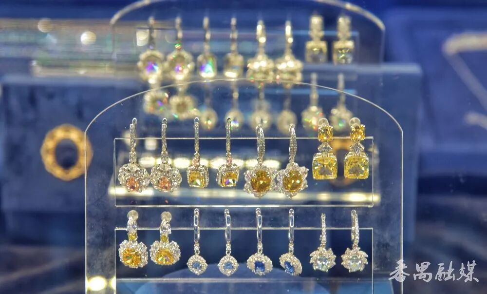 步入展区,“番禺智造”的精工基因与时尚创意扑面而来。展台上, 轻奢原创系列尤为吸睛,彩色宝石色泽浓郁饱满,在灯光下熠熠生辉;日韩风情系列走 “小而美” 路线,看似简约却藏着韩式甜妹感、日式轻奢细节;清新流行系列灵动简约,完美契合当下“清新甜妹风”穿搭,和时装周上诸多充满活力的原创设计师款服装一拍即合。“这些产品的工艺与设计,都是番禺珠宝产业‘精工+创新’的缩影。