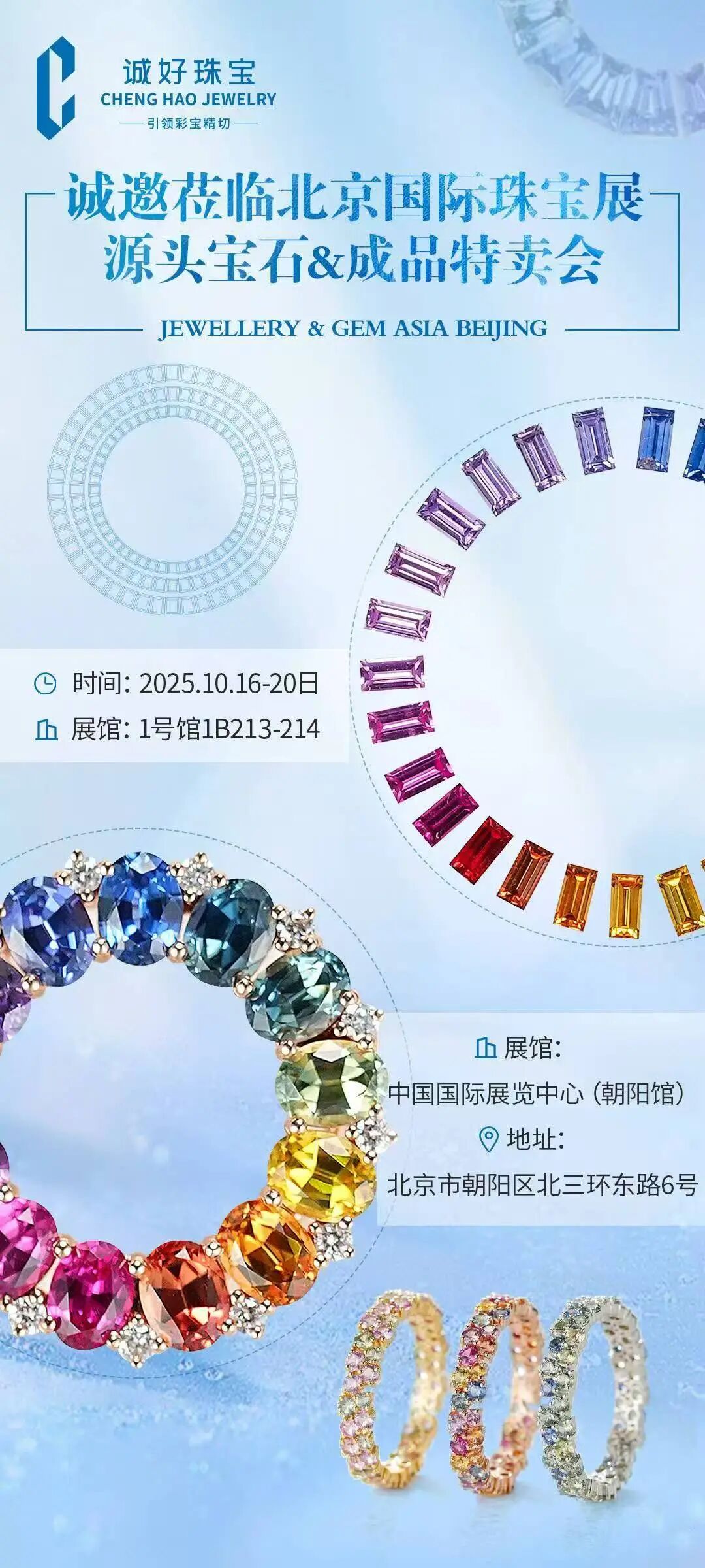 2025中国国际珠宝展将于10月16日至20日在北京中国国际展览中心(朝阳馆)举办。 本届展会预计展览面积将超过3万平方米,汇聚国内外珠宝行业精英,打造集产品展示、商贸洽谈、行业交流于一体的专业平台。