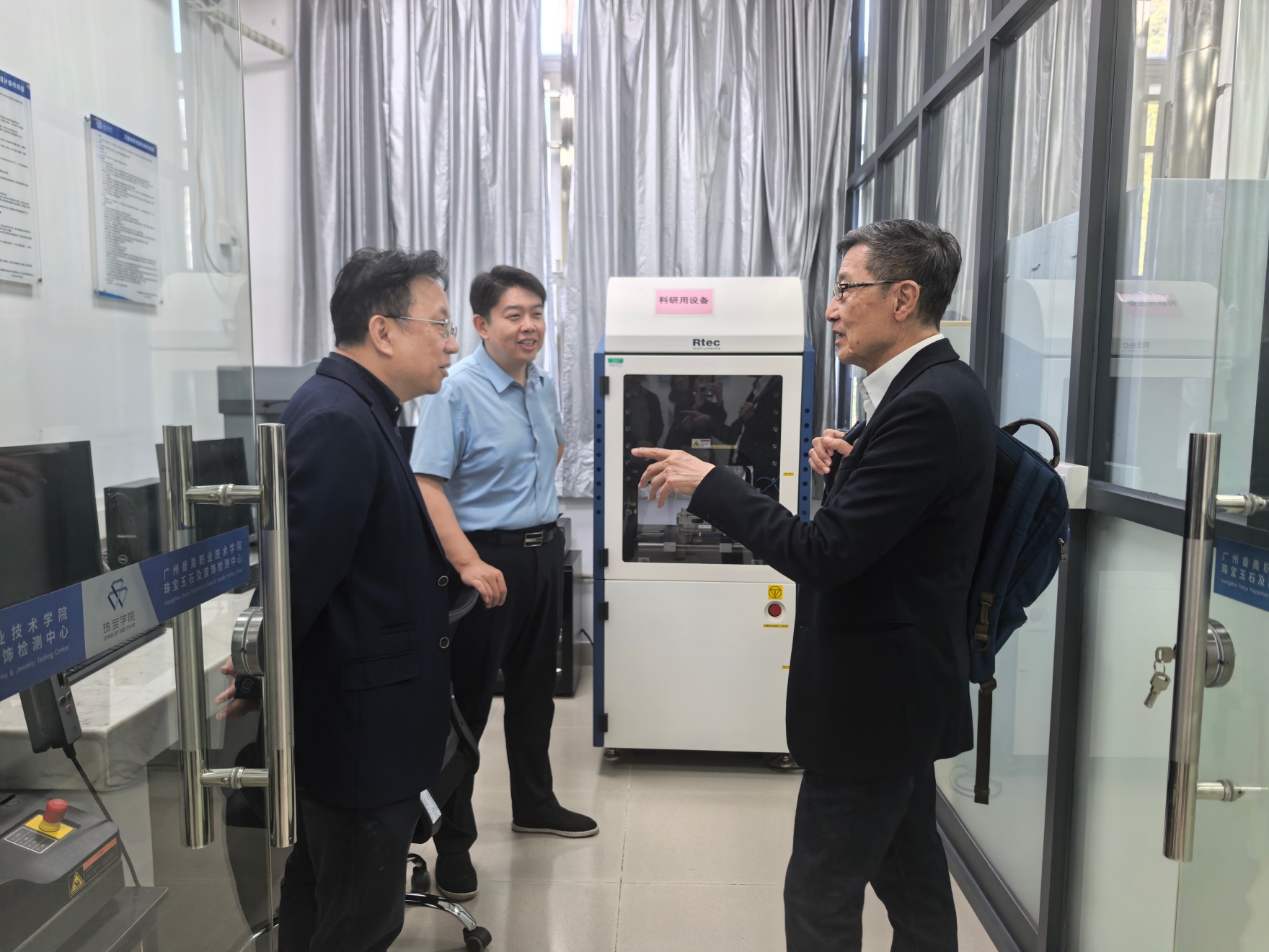 广州元艺珠宝有限公司董事长岑元骥在交流中表示:这次实地参观让我印象深刻。原来学校的科研和设备条件如此先进,部分设备的配置甚至超越了行业水平。如何将这些优质的硬件资源与产业实际需求更紧密结合,是我们当前共同关注的重要课题。他进一步指出,未来将积极依托学校强大的博士资源和精良设备,校企双方开展前沿技术联合攻关,共同推动产学研成果转化,提升产业核心竞争力。同时认为,学校具备如此丰富的资源和扎实的科研实力,完全有能力参与甚至主导国家标准的制定工作,从而推动行业走向更加规范、有序的发展道路。