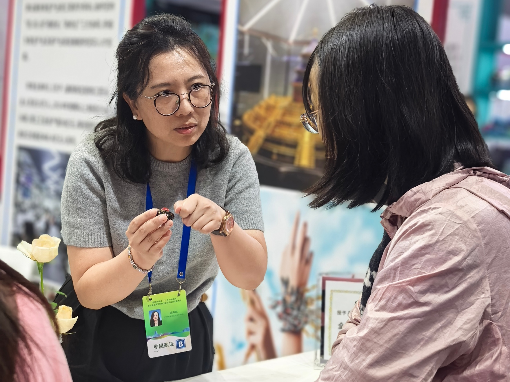 在全国劳务协作领域规模最大、层次最高的盛会上,作为广东省重点推选的优秀代表,“番禺珠宝首饰工匠”劳务品牌在特色主题展区大放异彩,成为全场瞩目的焦点。在大会特色主题展区,该品牌以其卓越的技能展示和显著的产业推动价值,吸引了各级领导、专家与观众的目光,收获高度评价。广州市番禺区珠宝产业发展联合会秘书长简海琪活动期间,向与会领导、专家及观众详细介绍了品牌特色。品牌的成功亮相,不仅展示了番禺珠宝产业的硬核实力和人才优势,更向全国输出了劳务品牌高质量发展的先进经验。