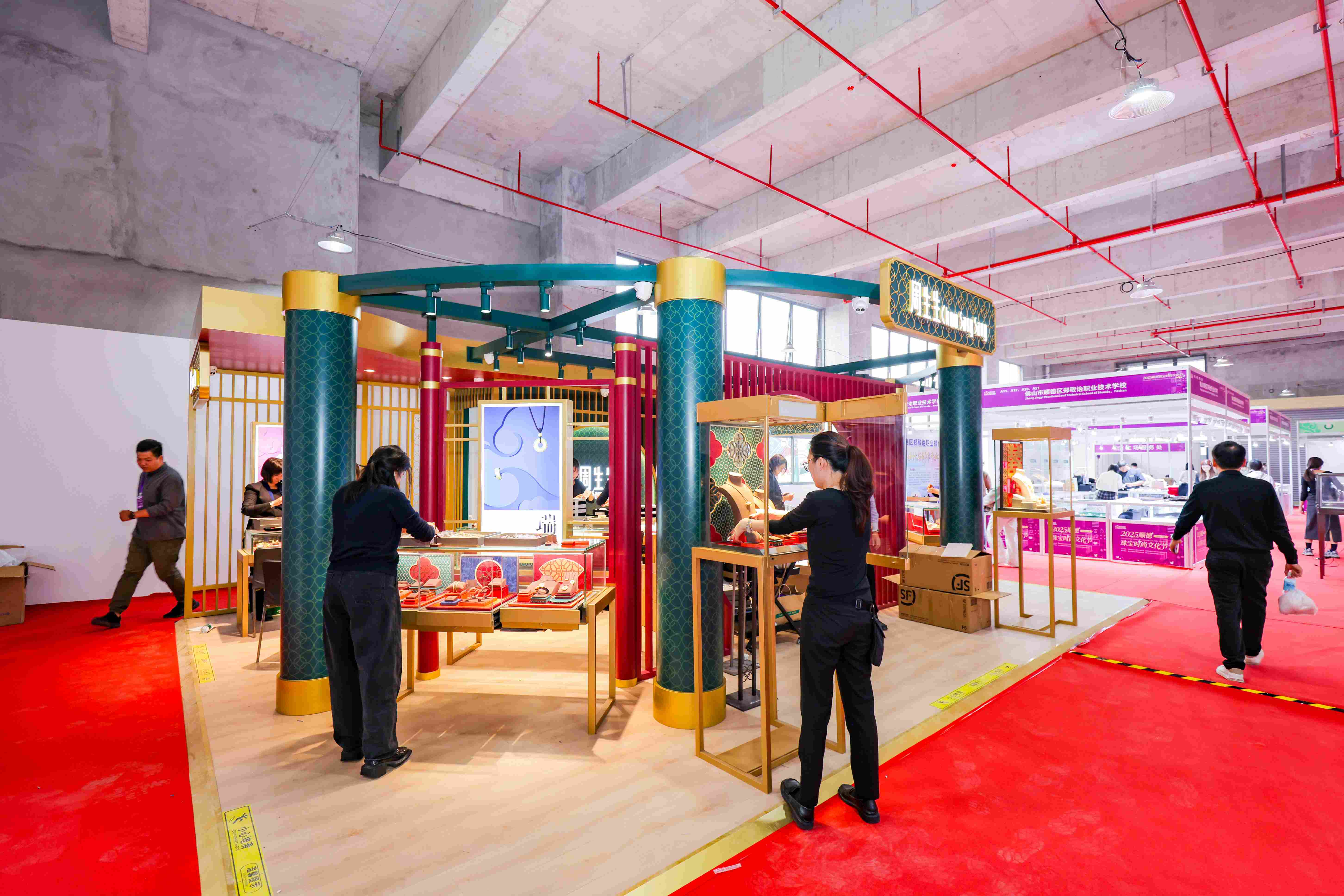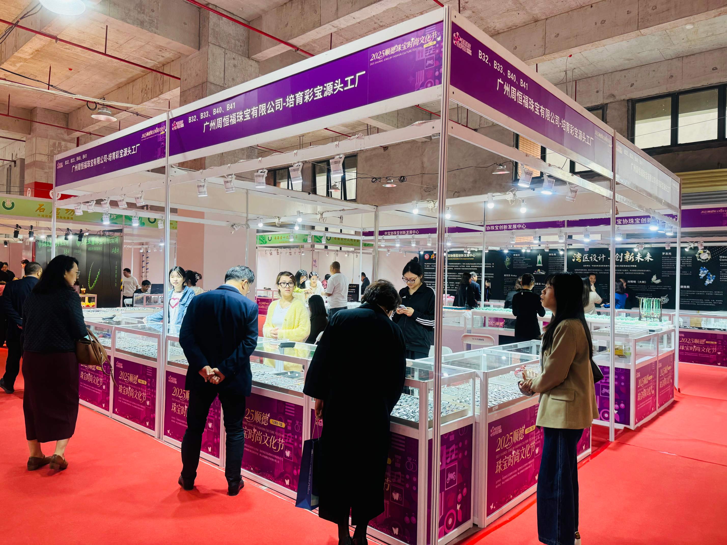 其中,由番禺区珠宝产业发展联合会、番禺区珠宝厂商会和番禺区大罗塘珠宝首饰商会共同组织了“番禺展团”以创新设计与精湛工艺成为展会焦点,集中展示了番禺珠宝产业的集群实力与时尚活力。