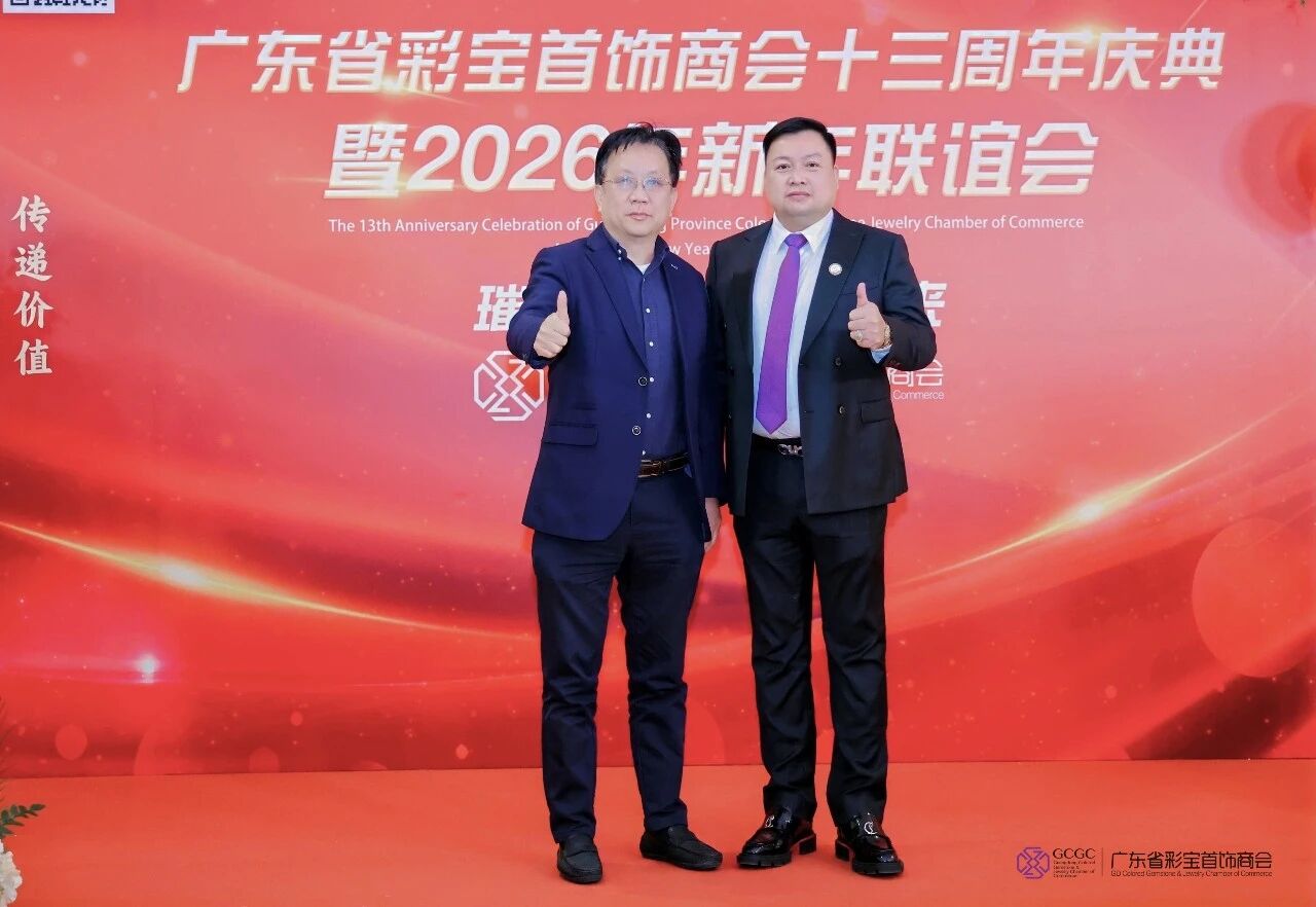 金蛇辞旧岁,瑞马启新程。2026年1月8日晚,广东省彩宝首饰商会 “璀璨同行・智绘未来”13 周年庆典暨 2026 新年联谊会在广州迎宾馆圆满举办。广州市番禺区珠宝厂商会永远荣誉会长李文俊、吴威,会长黄建民、秘书长简海琪受邀出席,与行业内 250 余位商协会会长、嘉宾及会员代表齐聚一堂,共叙情谊、共商发展。