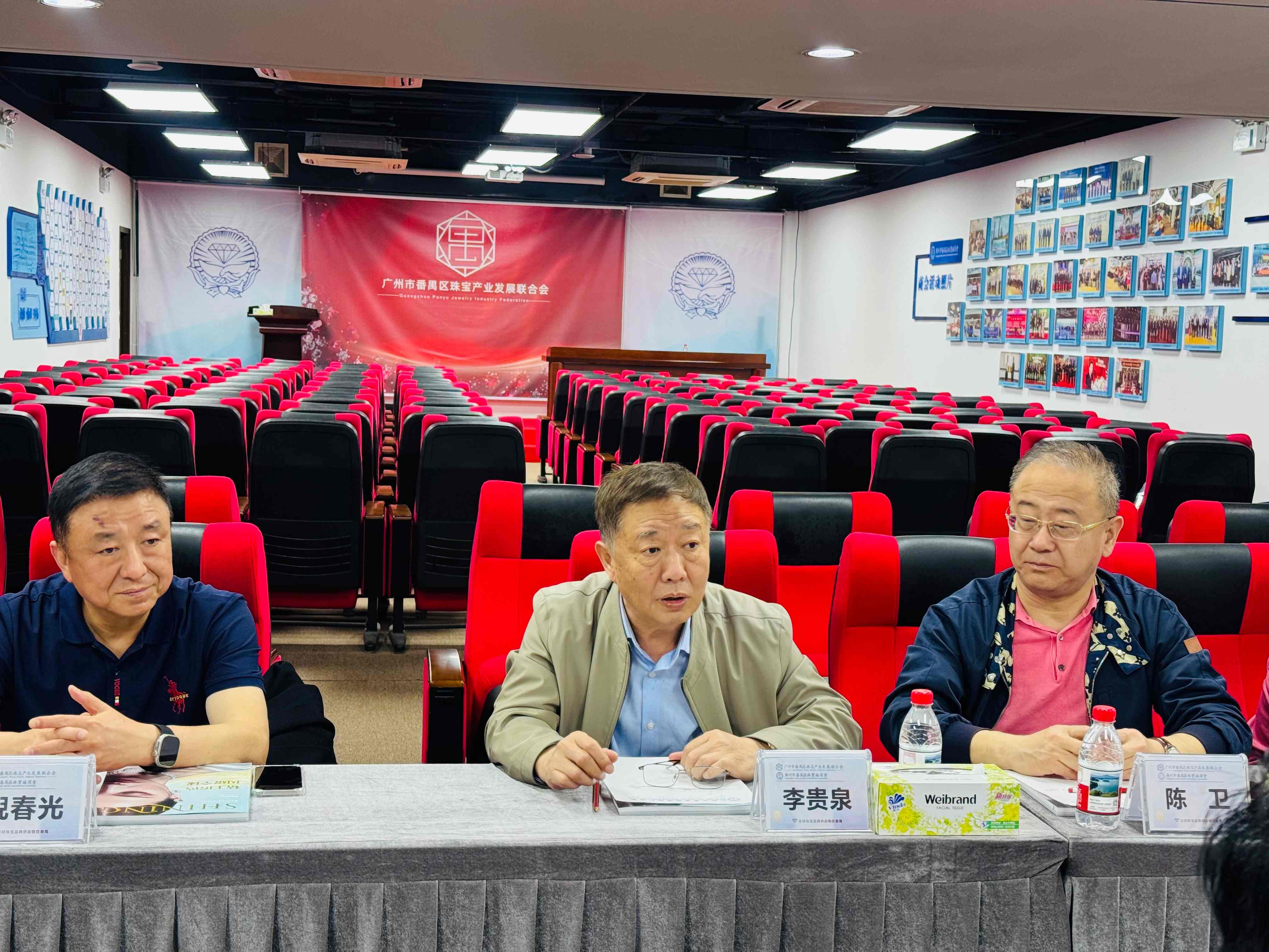 天津市黄金珠宝行业协会代表团由副会长兼秘书长李贵泉带队,成员包括副秘书长倪春光、副秘书长兼宝玉石文化分会秘书长陈卫,以及天津珠宝街有限公司总经理刘树霖、颐源珠宝经理王毅、君枫珠宝经理杨芳等企业代表。番禺区珠宝厂商会会长黄建民、秘书长简海琪及本地企业代表共同参与交流。