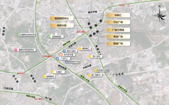 广州南站临站经济片区:粤港澳大湾区客厅与门户枢纽经济区、广佛高质量发展融合新极核。4条高铁、3条城际联通大湾区核心城市,日客流高峰达92.2万。